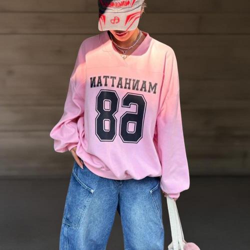 [미라클세븐]여성 빈티지 핑크 오버사이즈 스트리트 프린트 맨투맨