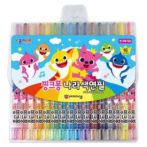 [셀러허브_여성트랜드패션]핑크퐁 완구 아기상어 나라색연필 16색