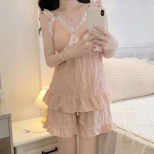 [셀러허브_여성트랜드패션]ONM (프릴나시핑크) 여성 여름잠옷 나시 반바지 파자마