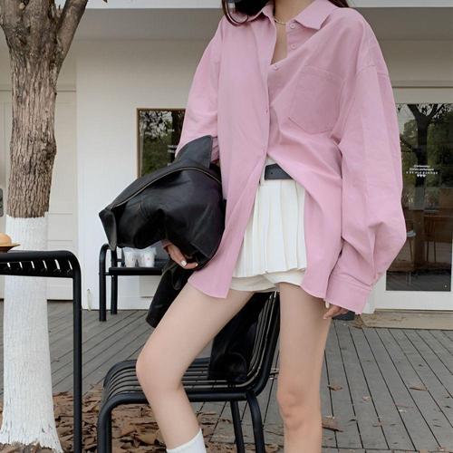 [셀럽하우스]오버핏 KGIP0945 인기 핑키 베이직 셔츠