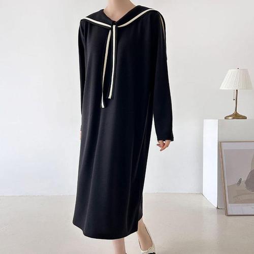 [옷자락]여성 가을 하객 원피스 핀턱 라운드 리본 스트랩 오버핏 롱드레스
