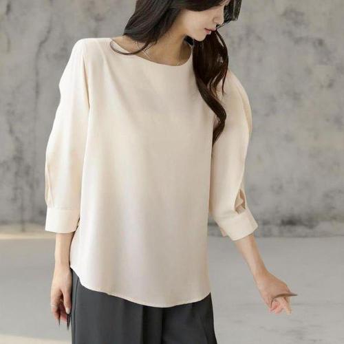 [옷자락]여성 가을 하객 패션 핀턱 퍼프 7부 라운드 티셔츠