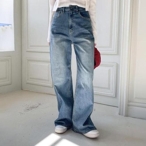 [다잇템]여성 넓은 하늘색 워싱 일상용 데님팬츠