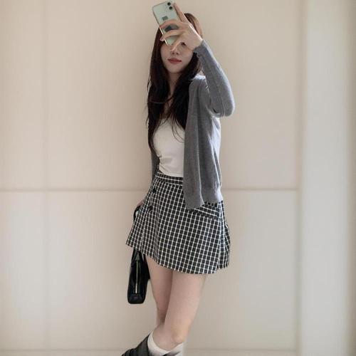 [신상오픈런]여성 체크 랩 하이웨스트 버튼 반바지 키치 스타일