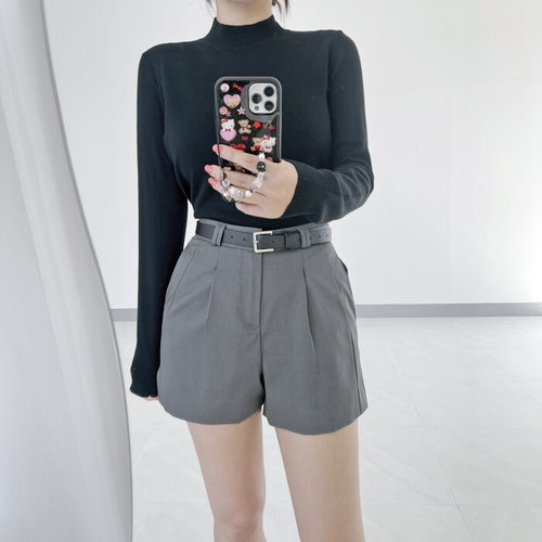 글램핏 / 벨트 세트 하이웨스트 핀턱 쇼츠 반바지 슬랙스 팬츠