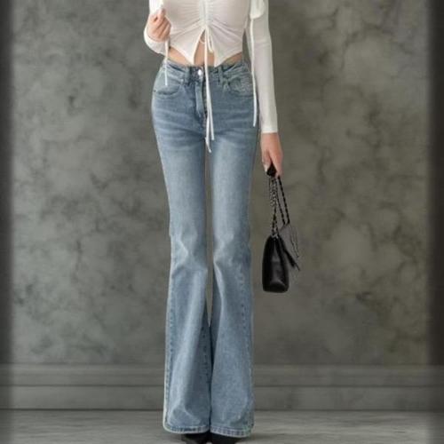 [다잇템][다잇템] 여성 워싱 하이웨스트 미니멀리즘 나팔 진_23740402_588872
