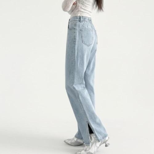 [옷자락]여성 롱 하이웨이스트 뒷밴딩 밑단트임 세미와이드 청바지
