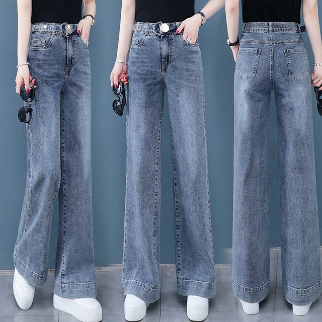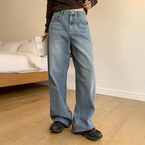 새로운 가을 겨울 스타일 사계절 기본 여성용 하이웨이스트 레트로 와이드 레그 다용도 캐주얼 청바지