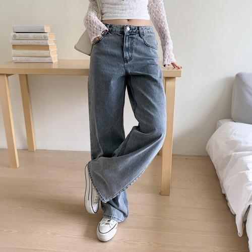 [옷자락]여성 하이웨이스트 와이드핏 청바지