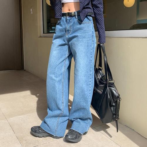 [옷자락]여성 루즈핏 깔끔한 하이웨이스트 와이드 청바지