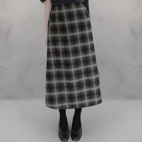 여성 로맨틱 정장 스커트 가을 겨울 모직 롱 하이웨스트 체크 A라인 트렌드 힛템