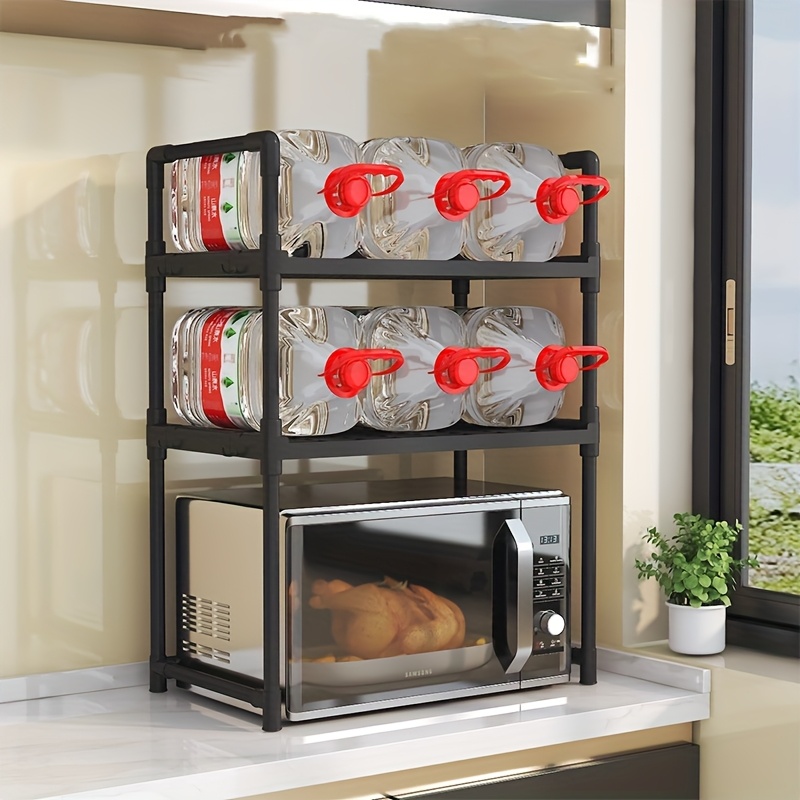 TEMU 2가지 색상 제공 - 확장형 2단 주방 정리대, 전자레인지 및 오븐용 | 블랙 메탈 카운터탑 오거나이저, 오픈 선반으로 양념, 주방용품, 조리기구, 가전제품 보관에 완벽 | 기능적 주방 정리대 | 블랙 메탈 프레임
