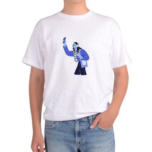 [에이치플러스몰]길단 아시아핏 반팔티 학생 모바일폰 사진 헤드폰그림 다양한색상 전사이즈