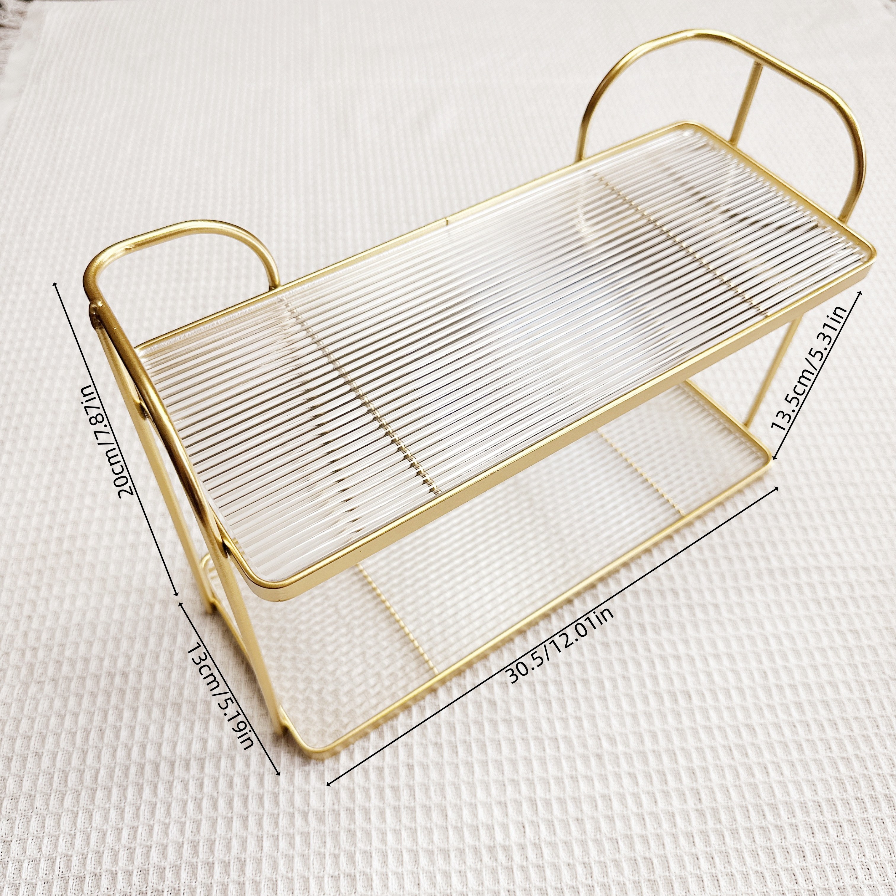 TEMU 1개 수제 세면대 수납 선반, 데스크탑 철제 선반, 이중 층 샤워 젤 수납 선반, 화장실 수납 선반, 골든 아크릴 베이스 플레이트.