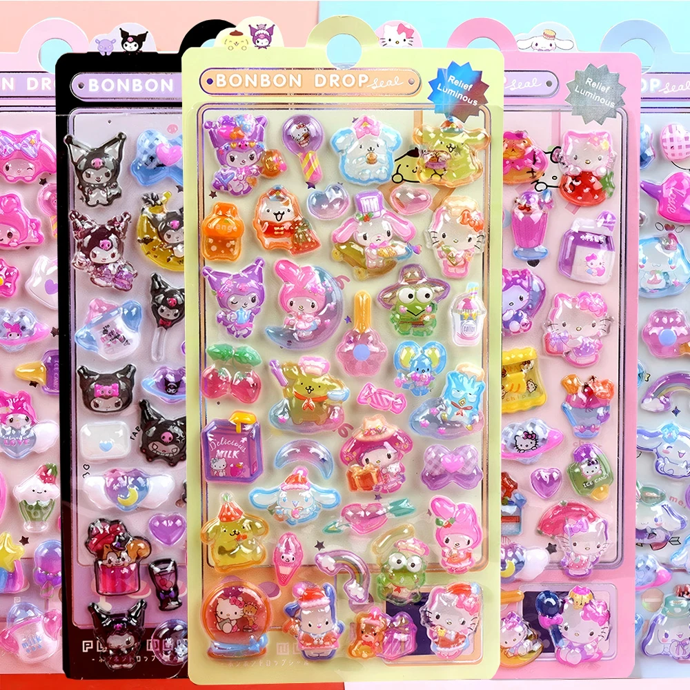 애니메이션 3D 버블 스티커 투명 젤리 크리스탈 DIY 저널 장식 마메치 미미치 러브 스티커 귀여운 ボンボン 드롭 스티커