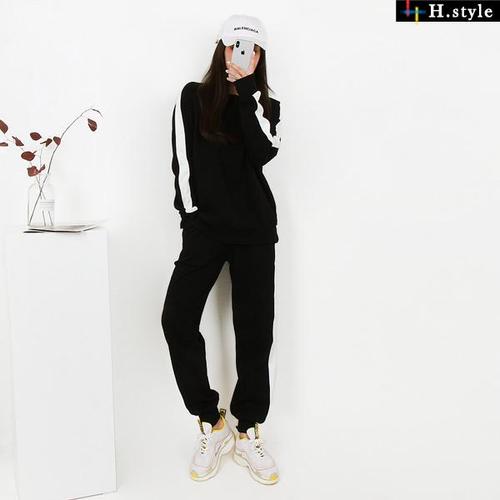 H스타일(SJ)한줄배색맨투맨세트 트레이닝 츄리닝 남녀공용 빅 데일리 가을 운동