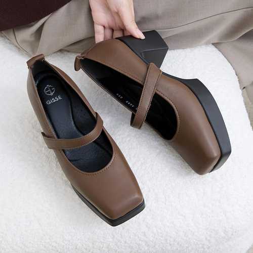 [지쎄]천연가죽 국내수제화 라일라 메리제인 통굽 펌프스 GIS-46