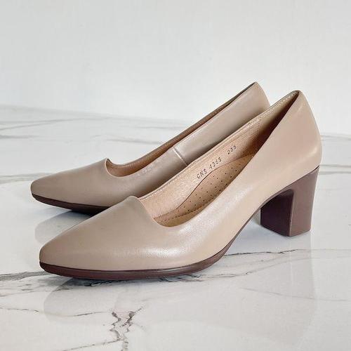 [카멜브라운]지쎄수제화 천연양가죽 시크 모던 통굽힐