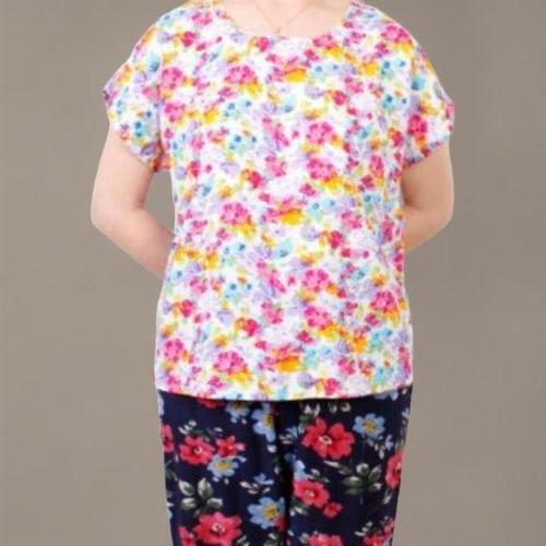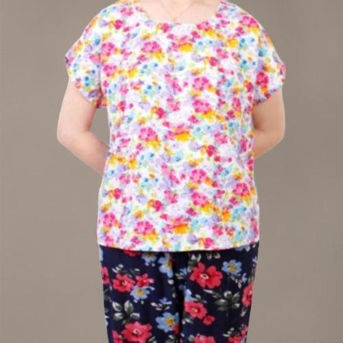 [옷자락] 여자 할머니 여름 캡소매 꽃무늬 나염 반팔 티셔츠