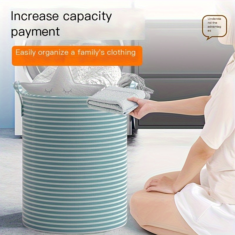 TEMU 1개 현대적인 접이식 세탁 바구니, 튼튼한 손잡이 - 공간 절약, 보관 용이 디자인, 의류, 장난감 및 욕실 필수품을 위한 내구성 있는 비직물 정리함 - 다기능 가정용 수납 솔루션, 세탁 바구니