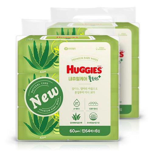 하기스 물티슈 내츄럴케어 플러스 캡형 64매x6입 2팩