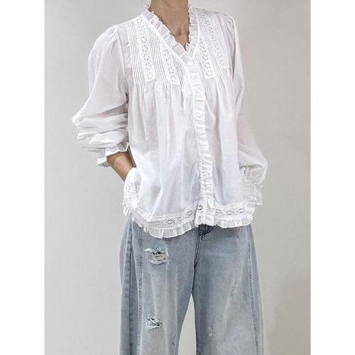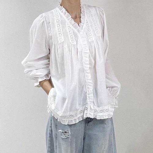 [헤레이스]레이스 배색 블라우스_YMSH25SS787