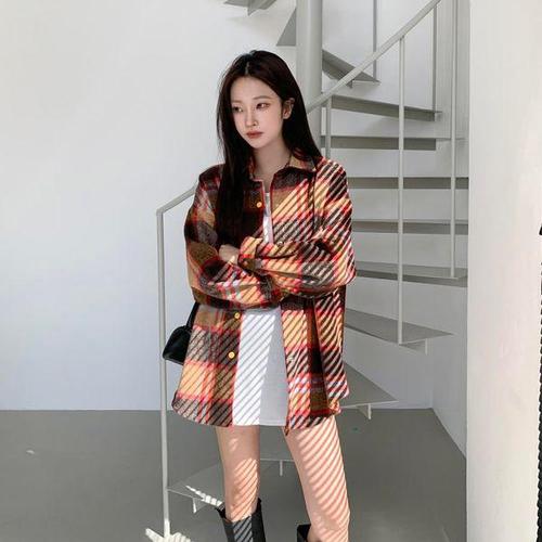 [다잇템]여자 헤링본 방한 FW 빅사이즈 격자 폭신 남방