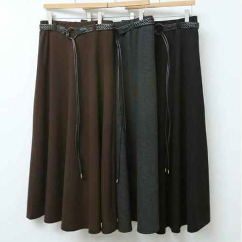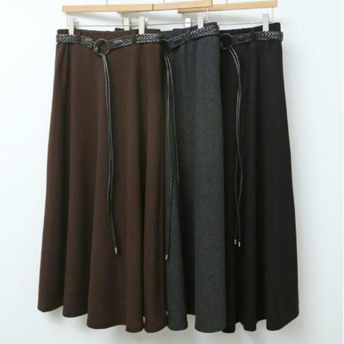[다잇템]여성 헤링본 백밴딩 베이직 긴치마 벨트포함