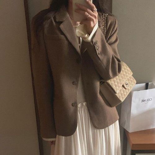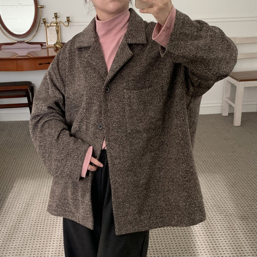 [에이치플러스몰]헤링본 싱글버튼 빈티지 데일러드 카라 직장인