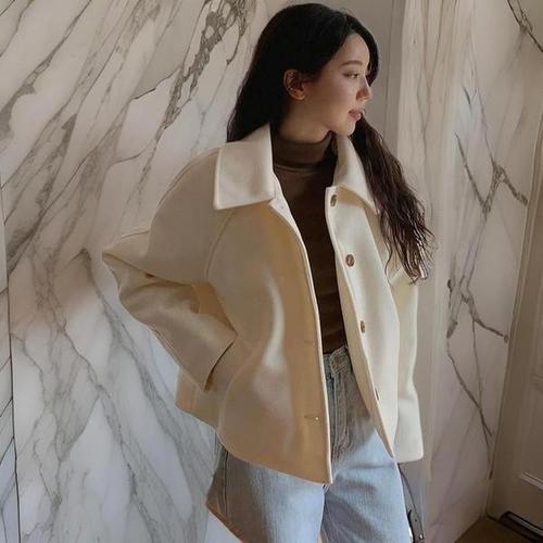 [다잇템_패션]여자 헤링본 울 하프 데일리 외투 코트