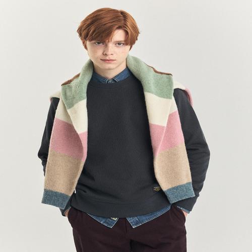 헤지스 남성 [스테디셀러] 그레이 짜임 면 긴팔티셔츠 (WHTS4D346G1)