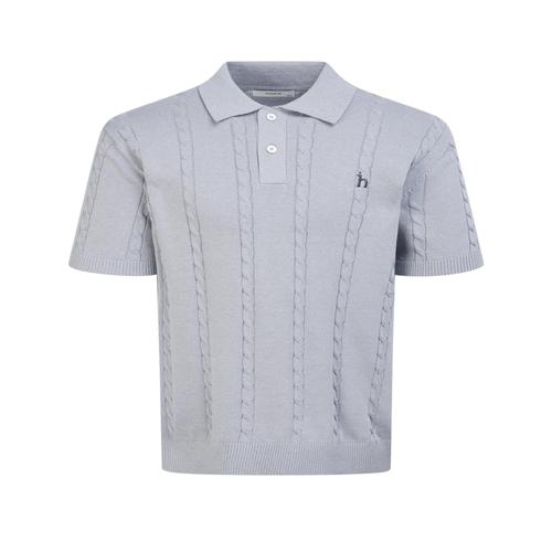 헤지스 남성 그레이 짜임 면혼방 반팔카라니트 (WHSW5B555G2)