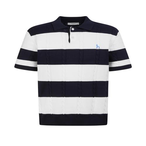 헤지스 남성 네이비 스트라이프 면 반팔카라니트 (WHSW5B554N2)