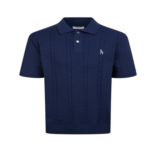 헤지스 남성 네이비 짜임 면혼방 반팔카라니트 (WHSW5B555N1)