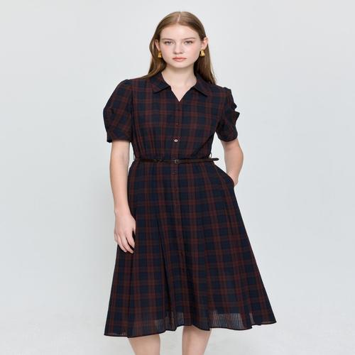 헤지스 여성 25SS 네이비 체크 셔츠형원피스 HSDR5BS19N2