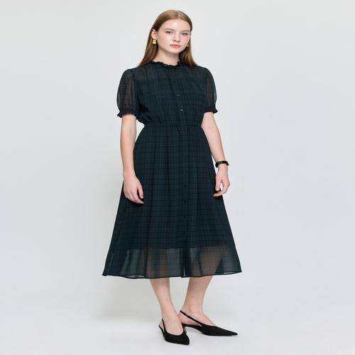 헤지스 여성 25FW 쉬폰 체크 원피스 다크그린 HSDR5C701E3