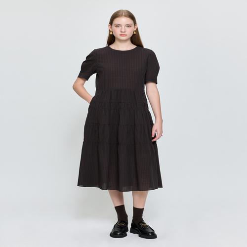 헤지스 여성 [마지막수량/추가할인]라운드넥 체크 티어드 원피스 브라운 (HSDR5C702W2)