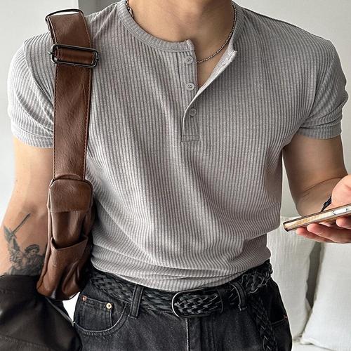 머슬핏 하프 헨리넥 IS 라운드 반팔티 남성 ST21 남성 WFIOVS3