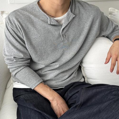 앨빈클로 3버튼 헨리넥 루즈핏 긴팔 티셔츠 AVT945