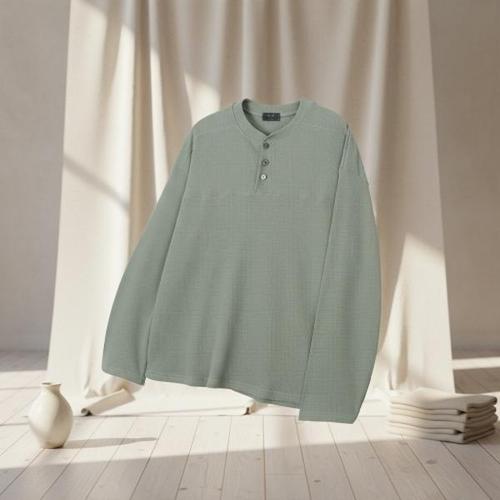 [옷자락]남성 봄용 헨리넥 긴팔 티셔츠 와플면 빅사이즈
