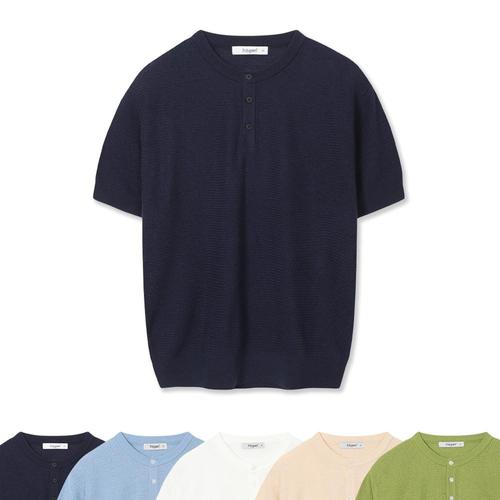 [폴리그램]텍스처 헨리넥 반팔 니트 - 5 COLOR