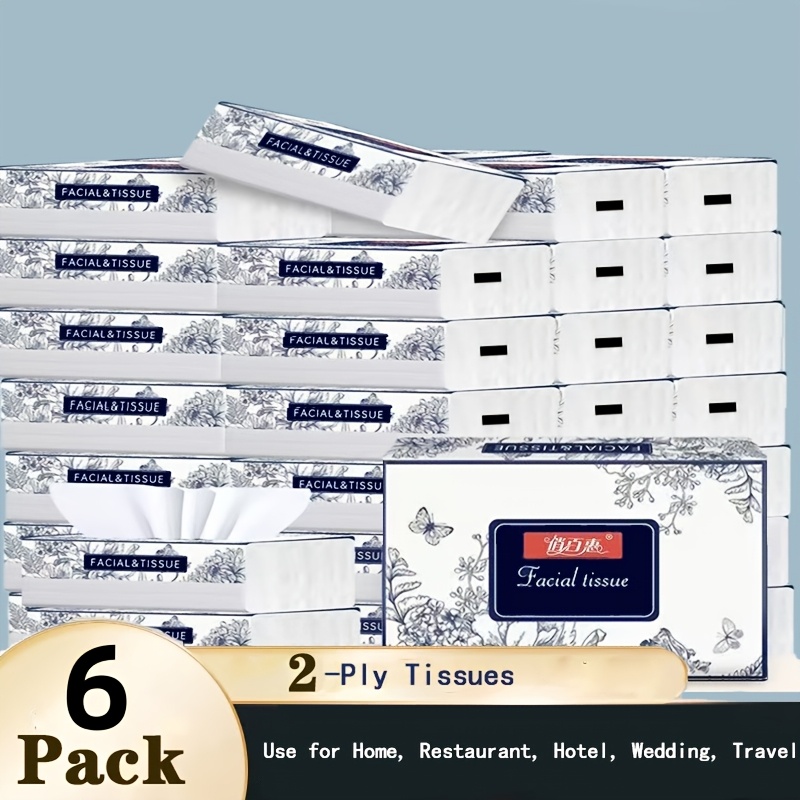 TEMU 초극세사 4겹 페이셜 티슈 6팩, 팩당 250매 - 무염료, 고품질 일회용 냅킨 (가정, 호텔, 여행, 차량용) | 휴대 간편, 여행 필수품 | 장식용 티슈 박스 | 튼튼한 종이