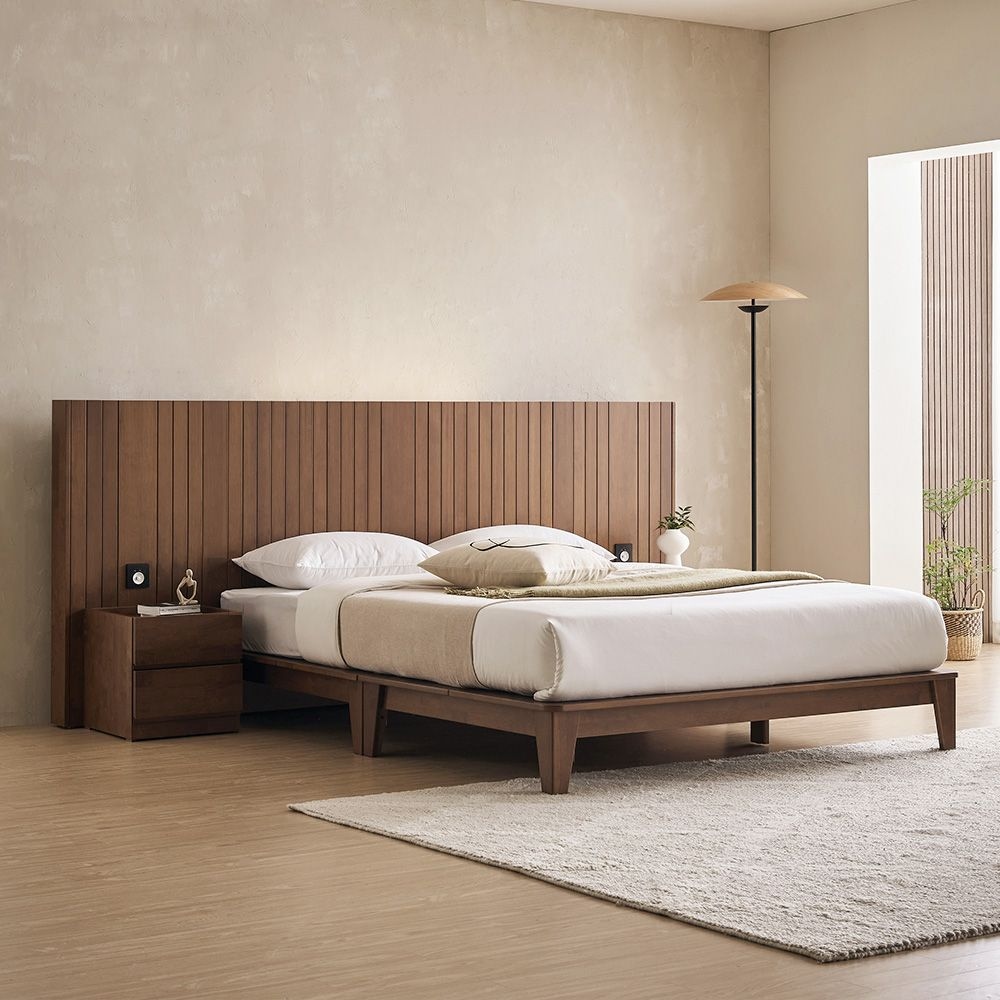 스타일 원목 평상형 조명 호텔식 침대프레임 Q/K 퀸 킹