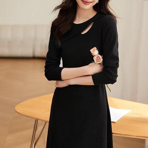 여성 홀가먼트 캐시미어 울 비체 라운드 니트 롱 원피스 모임룩
