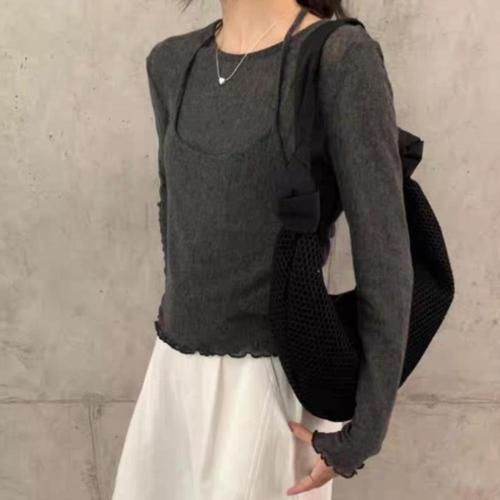 [신상오픈런]여성용 물결 패턴 긴팔 니트 홀터넥 레이어드 세트