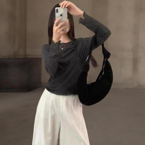 홀터넥 스트링 스트라이프 무지 오프숄더 긴팔 니트 티셔츠