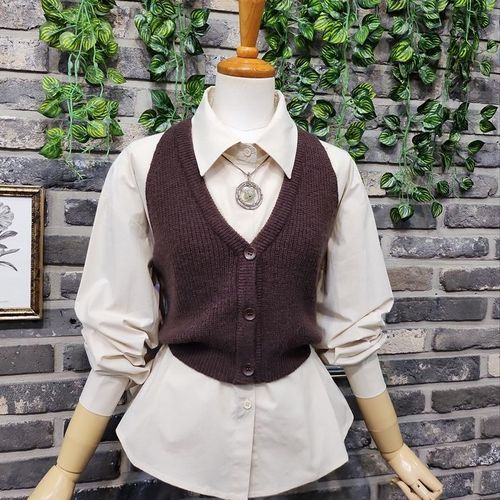 [바닐라비]여성 홀터넥 니트 베스트 블라우스 세트