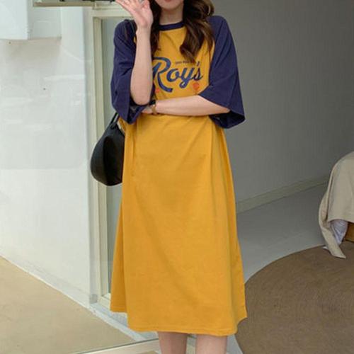상상그이상 여성용 국내제작 간절기 메이저 원피스 빅사이즈 오버핏 면100 레터링 포인트 마실룩 홈웨어룩