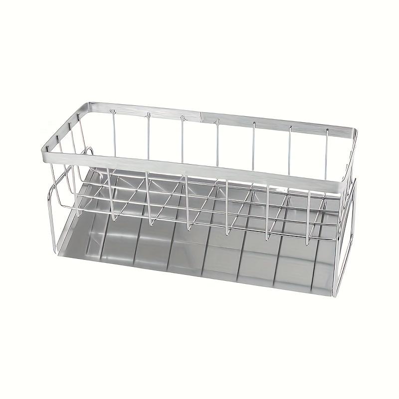 TEMU 304 스테인리스 스틸 주방 싱크대 정리대 - 배수 기능, 다양한 수납 공간, 스펀지, 행주, 비누 병, 청소 도구 수납 가능, 공간 절약형 디자인, 현대 주방에 이상적인 싱크대 액세서리