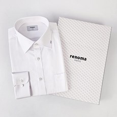 [백화점 정품] 레노마 남성 카라소매 포인트 드레스셔츠 화이트 일반핏 스판소재 정장 와이셔츠 긴팔 (선물포장)